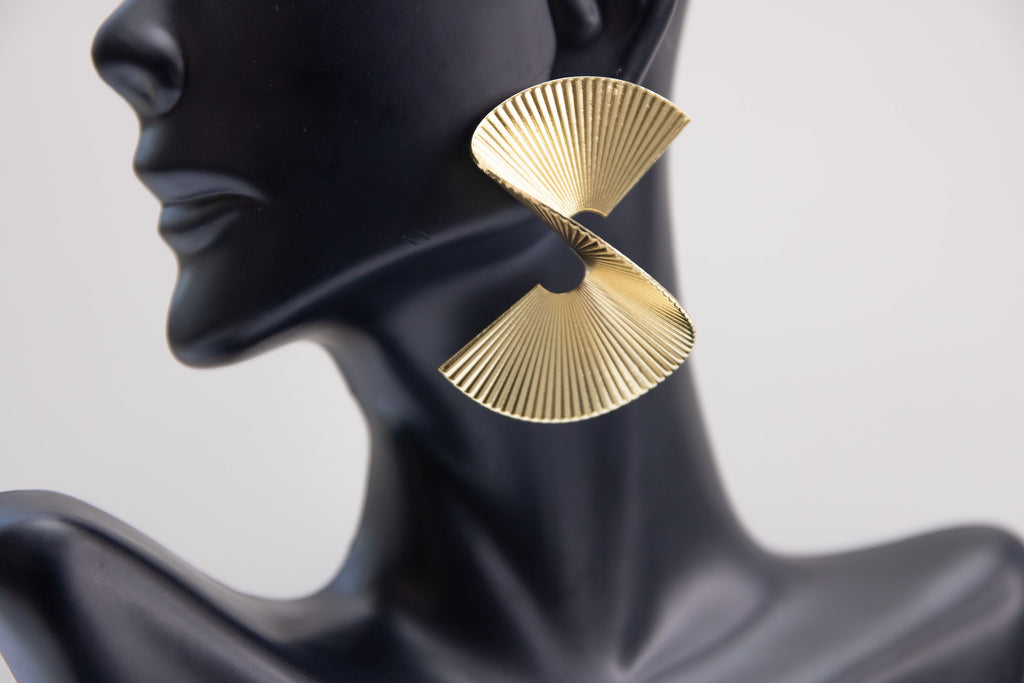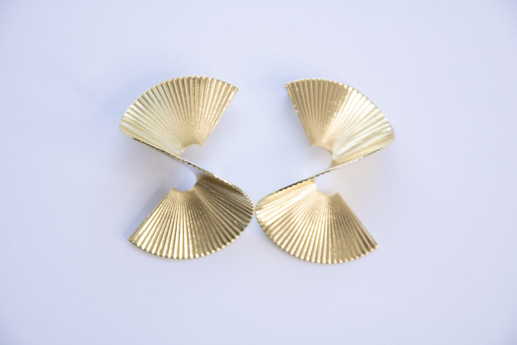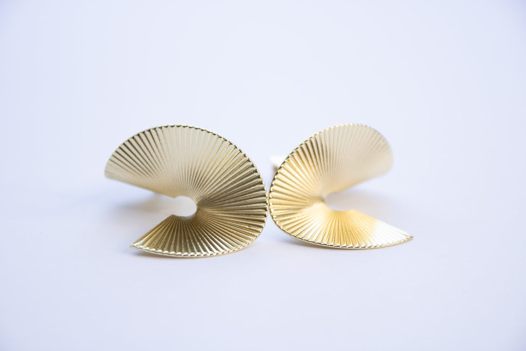 geometric, gold earrings, textured, semi circle earrings