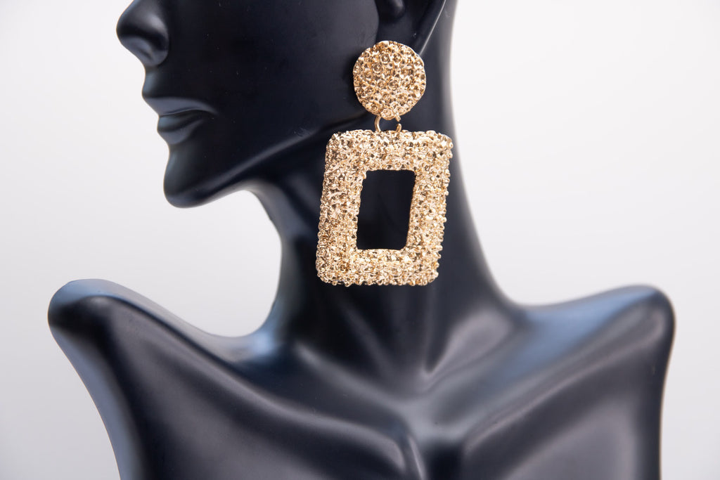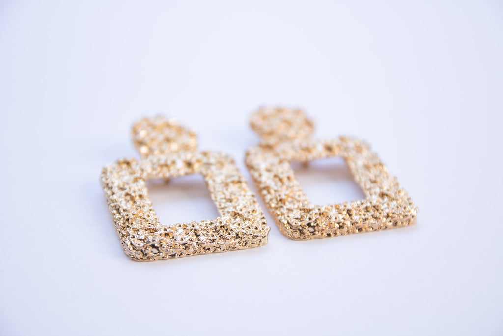 gold earring, gold plated earrings, square earrings, dangled earrings, geometric earrings, fashion earrings
